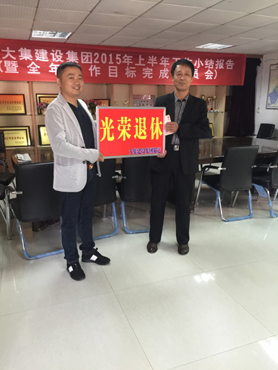 2015年11月2日上午,艷陽高照,湖北大集建設(shè)集團(tuán)有限公司向退休職工何維祥同志送去關(guān)愛,在歡送儀式上,集團(tuán)董事長徐濤同志親自為退休職工頒發(fā)了紀(jì)念獎(jiǎng)牌和萬元慰問金,并送上了衷心的祝福,徐董說:“感謝老員工多年來為公司做出的貢獻(xiàn),公司發(fā)展從小到大離不開老職工們打下的堅(jiān)實(shí)基礎(chǔ),公司永遠(yuǎn)不會(huì)忘記他們?yōu)楣镜钠D辛付出和貢獻(xiàn)。公司將繼承和發(fā)揚(yáng)他們艱苦創(chuàng)業(yè)、無私奉獻(xiàn)的優(yōu)良傳統(tǒng),努力工作,不斷推動(dòng)企業(yè)健康、穩(wěn)步向前發(fā)展”。同時(shí)徐董還說:“一個(gè)企業(yè)不僅要靠豐厚的待遇來激勵(lì)員工,更要靠濃厚的企業(yè)文化來凝聚員工,老職工退休舉行“退休”儀式,可以讓年輕員工感受到,只要我們努力學(xué)習(xí),愛崗敬業(yè)、為企業(yè)作出貢獻(xiàn),企業(yè)就永遠(yuǎn)不會(huì)忘記他們”。