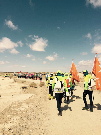5月22日戈壁挑戰(zhàn)賽開(kāi)賽首日,來(lái)自49所院校商學(xué)院的2000多名戈友再一次齊聚在阿育王寺,在塵沙和烈風(fēng)中鳴槍起跑。不遠(yuǎn)處,阿育王塔依然矗立。于是,千年的滄桑和青春的激揚(yáng),就這樣融合進(jìn)了那黃土漫漫、蕩氣回腸的茫茫弋壁中。在這群隊(duì)伍中,有一群來(lái)自大集的勇士,始終最積極、最燦爛、最耀眼的姿態(tài)將自己展現(xiàn)在不見(jiàn)邊際的天地盡頭,這便是由公司董事長(zhǎng)帶領(lǐng),對(duì)戈壁之行充滿著無(wú)限的幻想和探索的大集人。
