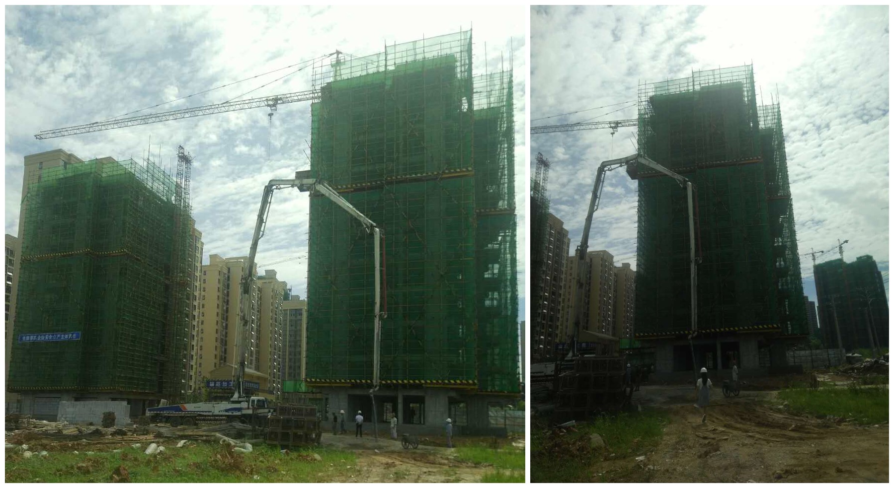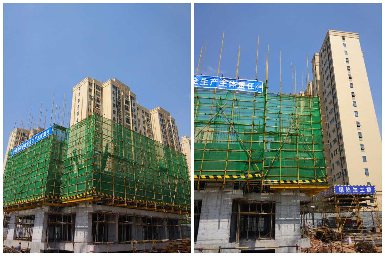 (6月7日,工程管理部檢查結果:外架采用最新規(guī)范要求,每步架子設置兩道攔腰桿,間距600,防護功能更好。)
