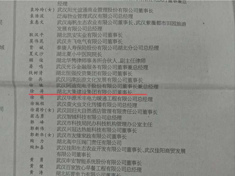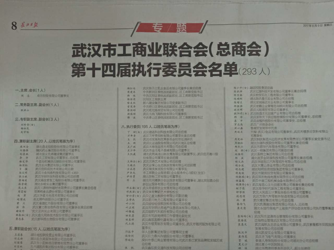 8月8日,武漢市工商業(yè)聯(lián)合會第十四次代表大會隆重召開,湖北大集建設(shè)集團(tuán)董事長徐濤當(dāng)選為總商會第十四界執(zhí)行委員!