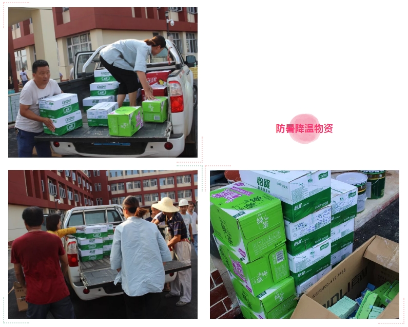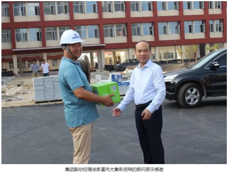炎炎夏日送清涼,絲絲關懷暖人心。7月24日,蔡甸區(qū)大集街黨工委書記曹克斌、副書記吳永峰,工會副主席劉浩等領導蒞臨南湖(新光)小學項目開展送清涼慰問活動,為項目上奮戰(zhàn)在高溫一線的工作人員送來綠茶、礦泉水、十滴水、人丹等防暑降溫物資,集團副總經理徐家富、工程部部長周偉陪同慰問并向各位領導詳細講解了項目建設情況。