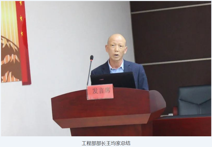 會(huì)議開(kāi)始,工程部部長(zhǎng)王均家公布了集團(tuán)公司2022年第一季度項(xiàng)目產(chǎn)值完成情況。隨后,各在建項(xiàng)目代表依次匯報(bào)項(xiàng)目上月產(chǎn)值完成情況、現(xiàn)場(chǎng)施工情況、施工中存在的問(wèn)題以及本月計(jì)劃施工產(chǎn)值及相應(yīng)施工安排。