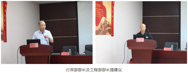 隨后,行政部部長李漢毛提出優(yōu)化生產(chǎn)調(diào)度會會議形式及嚴(yán)控合同中商票付款的建議,工程部部長王均家則結(jié)合各項(xiàng)目匯報的情況依次進(jìn)行詳細(xì)地點(diǎn)評指導(dǎo)。