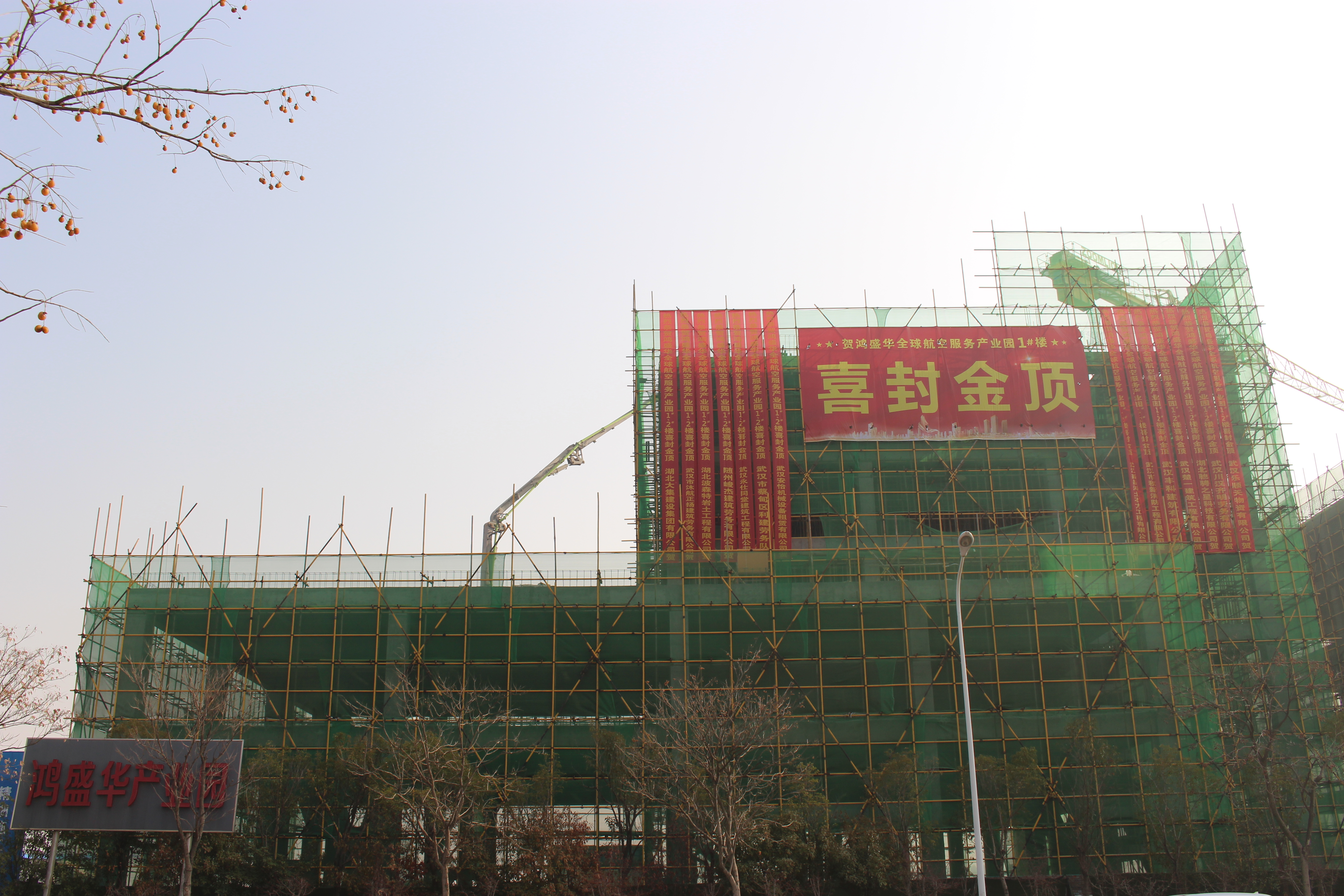 1月9日上午,晴空萬里,惠風(fēng)和暢,湖北大集建設(shè)集團承建的鴻盛華全球航空服務(wù)產(chǎn)業(yè)園項目1#廠房喜封金頂。