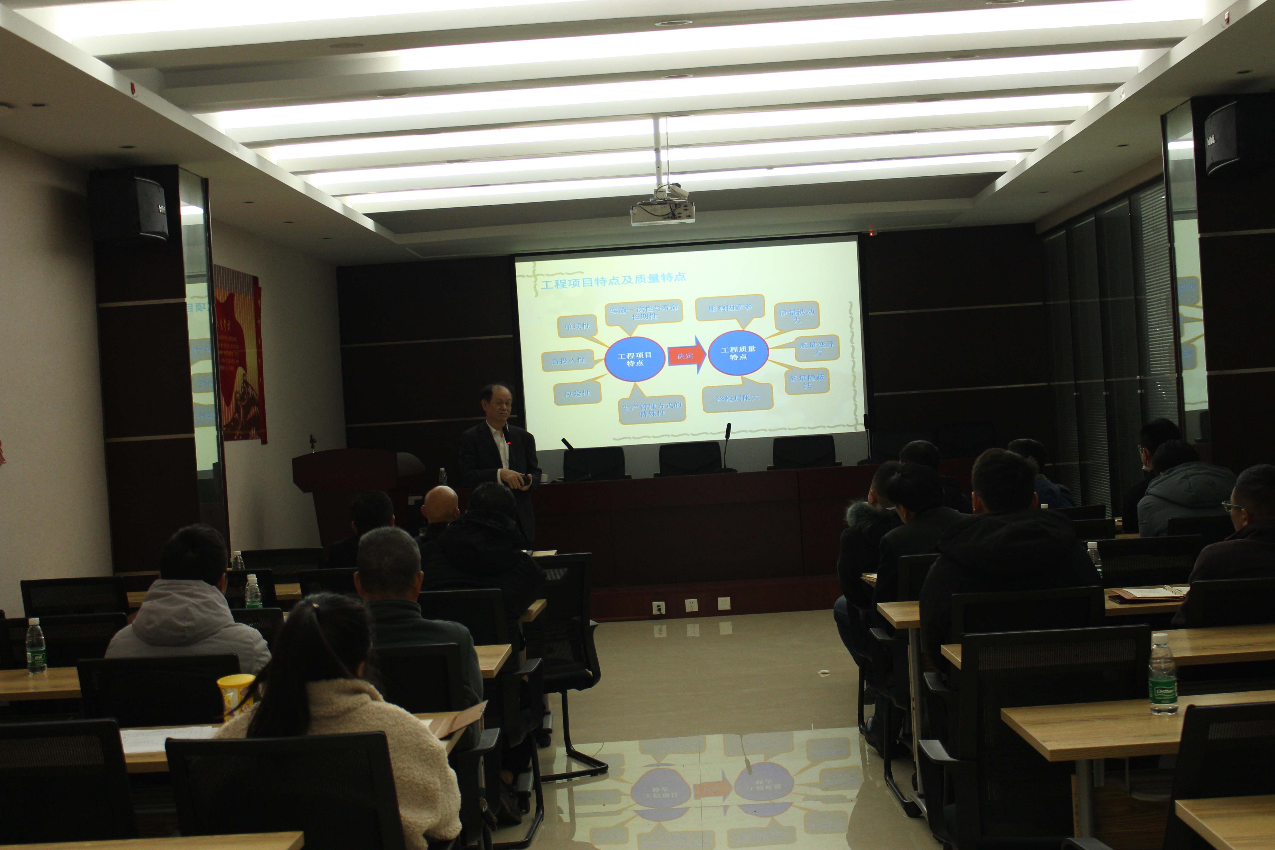 主講老師從工程師之戒·上世紀十大技術失誤、對工程師或未來的工程師的幾點善意忠告、施工項目質量控制原理三個方面進行授課。著重講解了工程建設程序、施工質量控制的概念和原理、工程施工質量控制、施工質量控制的統(tǒng)計分析、質量管理體系標準,并強調建筑工程應遵循“材料是基礎、設計是前提、施工是關鍵、管理是保證”的原則。授課中,老師理論結合實際、課件圖文并茂、內容豐富易懂,講解清晰透徹,參訓員工受益匪淺。