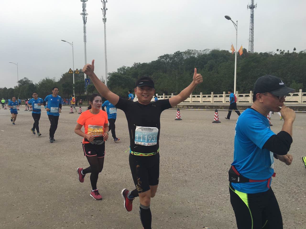 雖然下了一周的雨而且此天氣將會(huì)持續(xù)幾天,可是仍然阻擋不了大家參賽的勁頭和熱情,天不亮就早早起床直赴公司大院集合整裝待發(fā),所有參賽人員到齊后乘坐巴士前往比賽主會(huì)場(chǎng)提前進(jìn)行拉伸運(yùn)動(dòng)。我們到達(dá)目的地時(shí)天還剛蒙蒙亮,氣溫也很低,但是已經(jīng)聚集了不少參賽人員及后勤保障、治安人員,個(gè)個(gè)精神抖擻、容光煥發(fā),都期待著順利地跑出好成績(jī)!