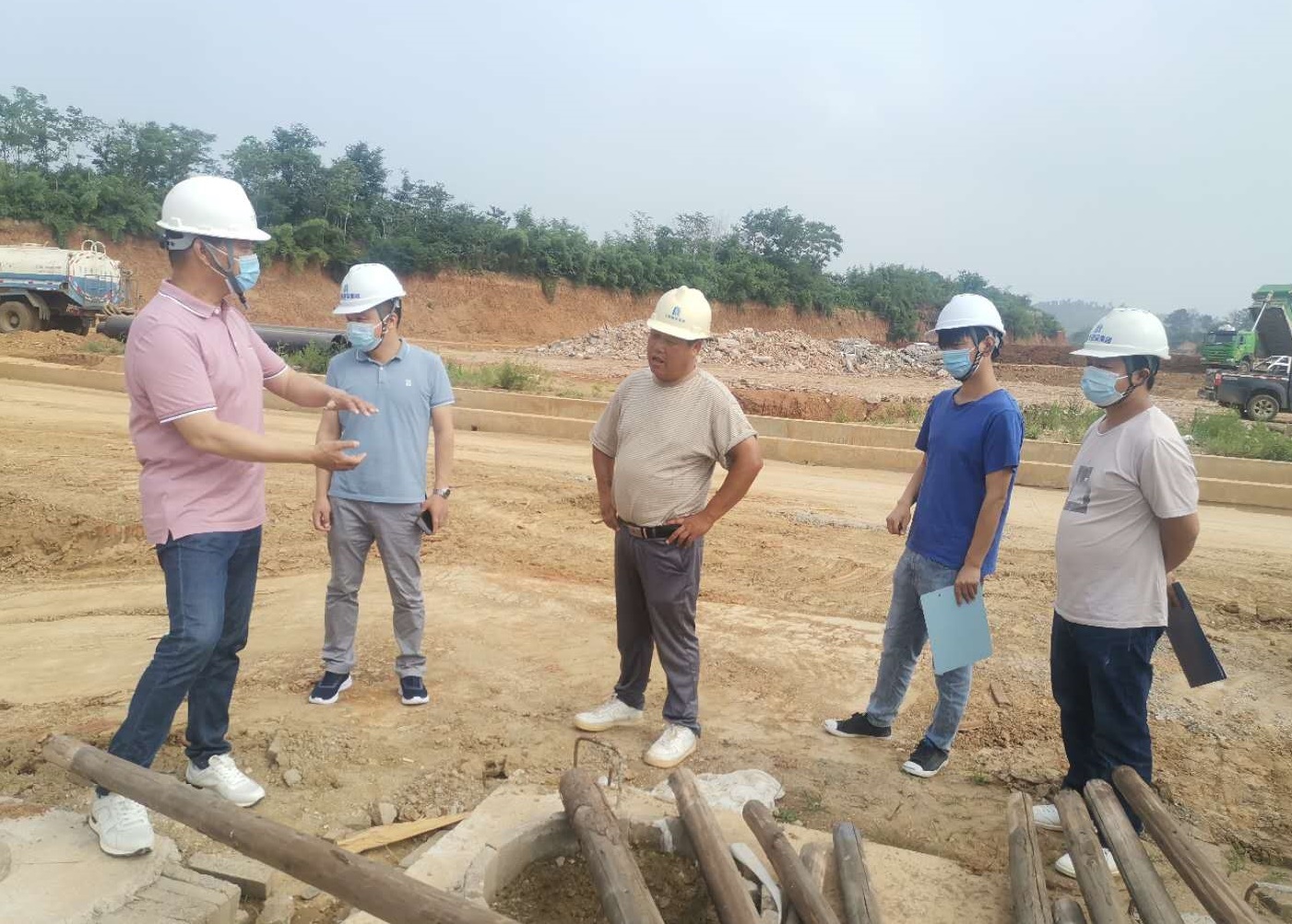 在項目人員的陪同下,徐副總一行人深入施工現(xiàn)場,對路基施工、雨水管安裝、土方回填、臨時用電、臨邊防護、施工現(xiàn)場疫情防控等進行了詳細檢查,對現(xiàn)場發(fā)現(xiàn)的問題及時與項目負(fù)責(zé)人進行溝通并提出改進措施。