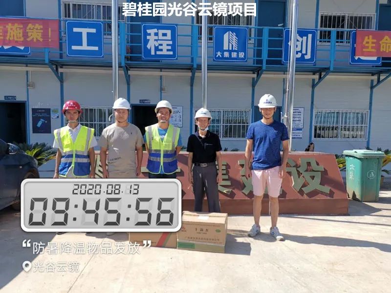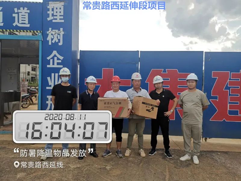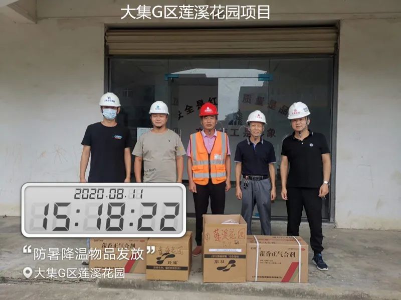 大集G區(qū)蓮溪花園項目、大集街農(nóng)村污水治理項目、大集景綠網(wǎng)紅特色小鎮(zhèn)項目、世茂龍灣47#號地塊別墅樓工程、黃星大道加油站項目、年產(chǎn)80萬套總成項目、常貴路西延伸段項目、泰禾君悅花園項目、碧桂園光谷云鏡項目……每到一處,集團工程部都會將購買好的毛巾、風(fēng)油精、人丹、十滴水、藿香正氣水、蚊不叮等防暑降溫物資送到項目人員手中,并要求各項目部一定要把施工人員的身體健康放在首位,要在全力以赴抓質(zhì)量、搶進度、創(chuàng)佳績的同時,嚴格按照國家有關(guān)規(guī)定,把防暑降溫工作落實好、做到位,要根據(jù)天氣氣溫的變化,合理安排工作時間,作好安全預(yù)防措施、備足防暑降溫物質(zhì),讓員工們安全度過高溫天氣。
