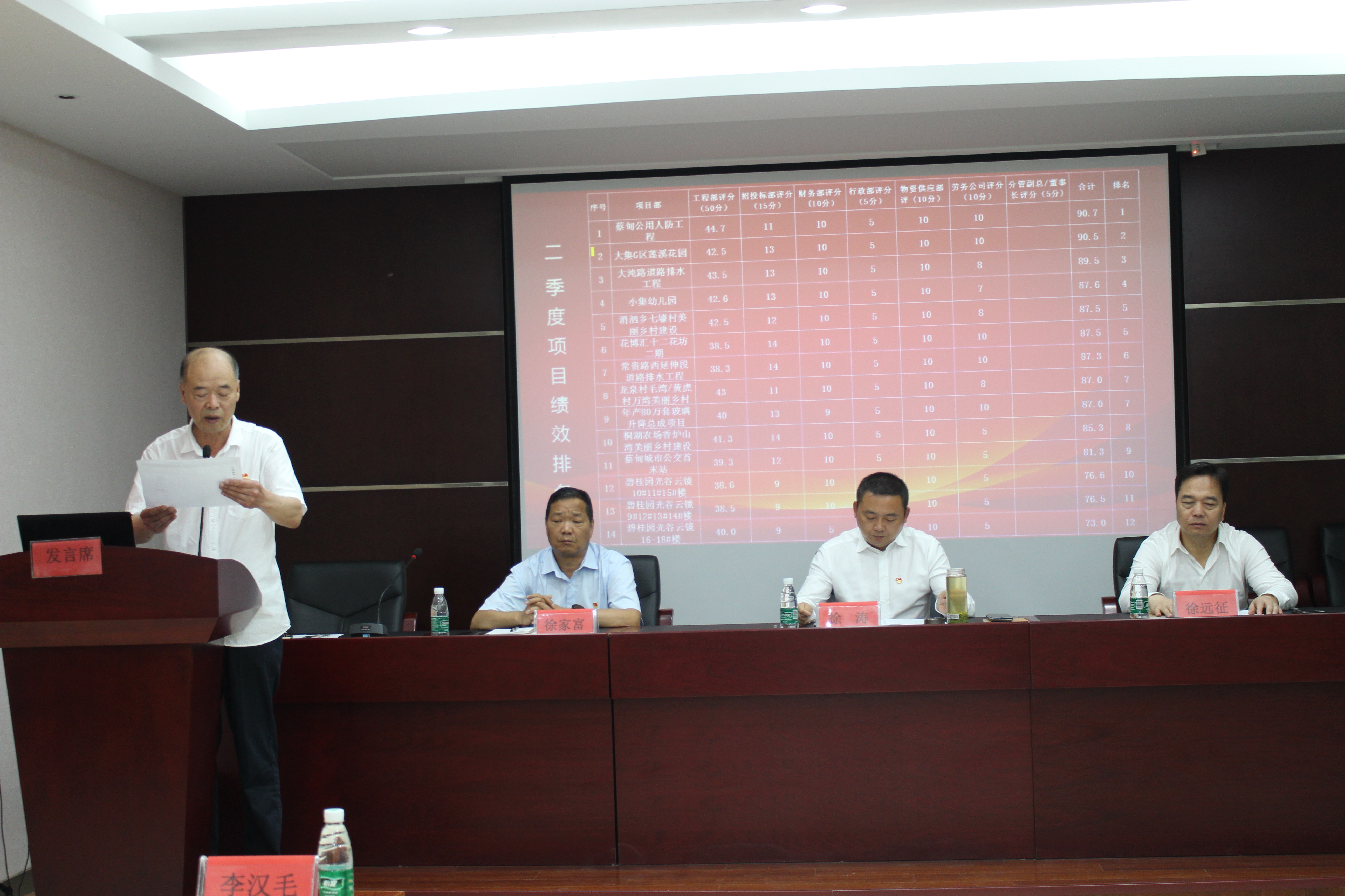 行政部部長李漢毛公布了集團公司2021年第二季度項目績效考核結果。
