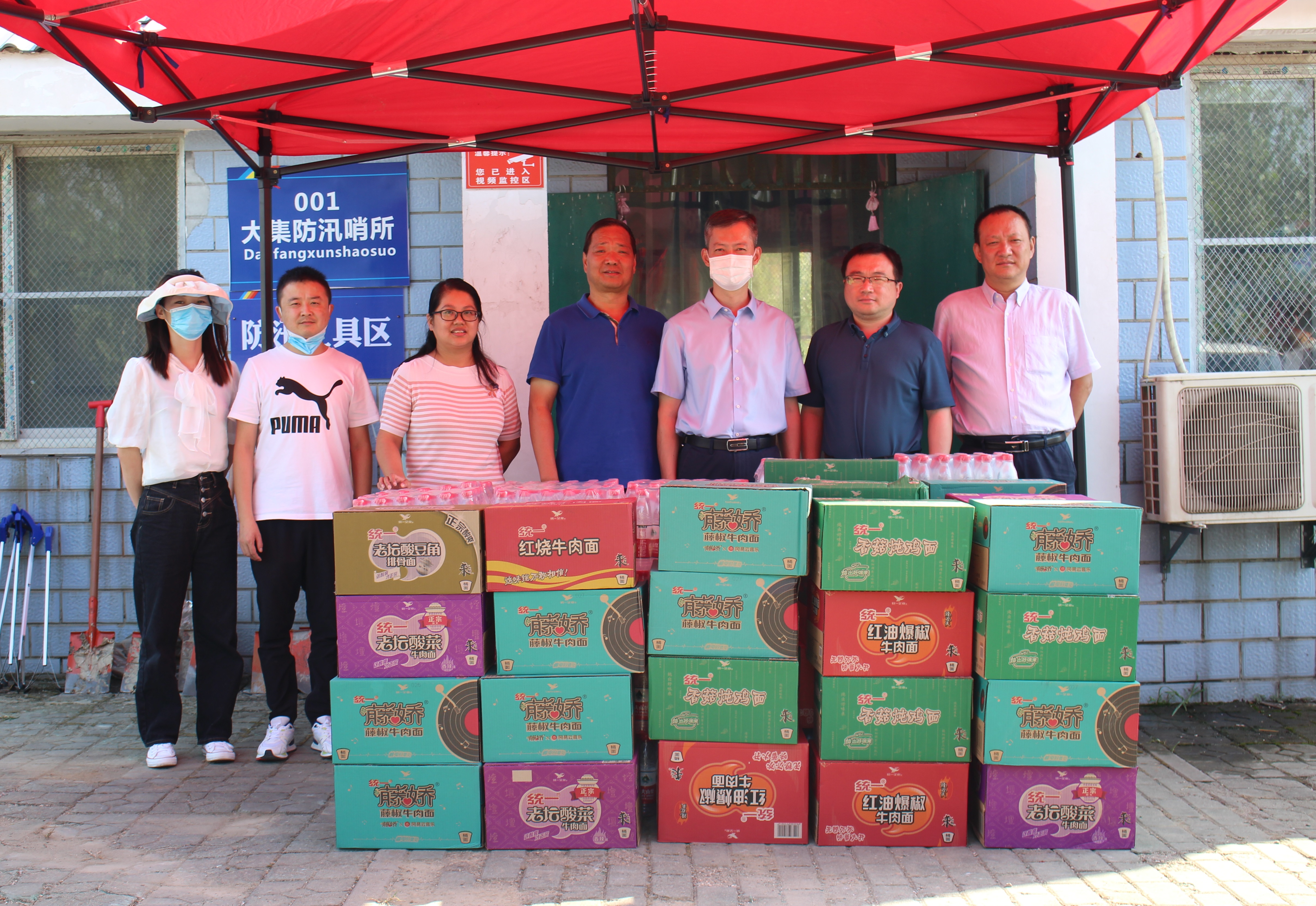 為支持蔡甸區(qū)大集街道辦事處做好防汛工作,9月9日下午,湖北大集建設集團副總經理徐家富帶領集團公司各部門負責人前往大集防汛哨所,看望堅守在防汛一線的值守人員,為他們送去了方便面、礦泉水、飲料等慰問物資,以表達對防汛一線值守人員的關心和敬意。